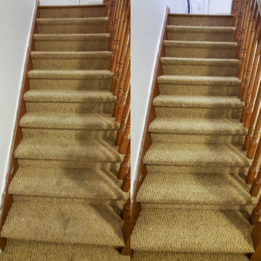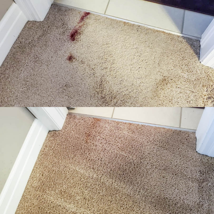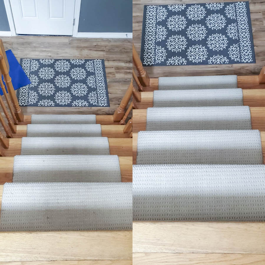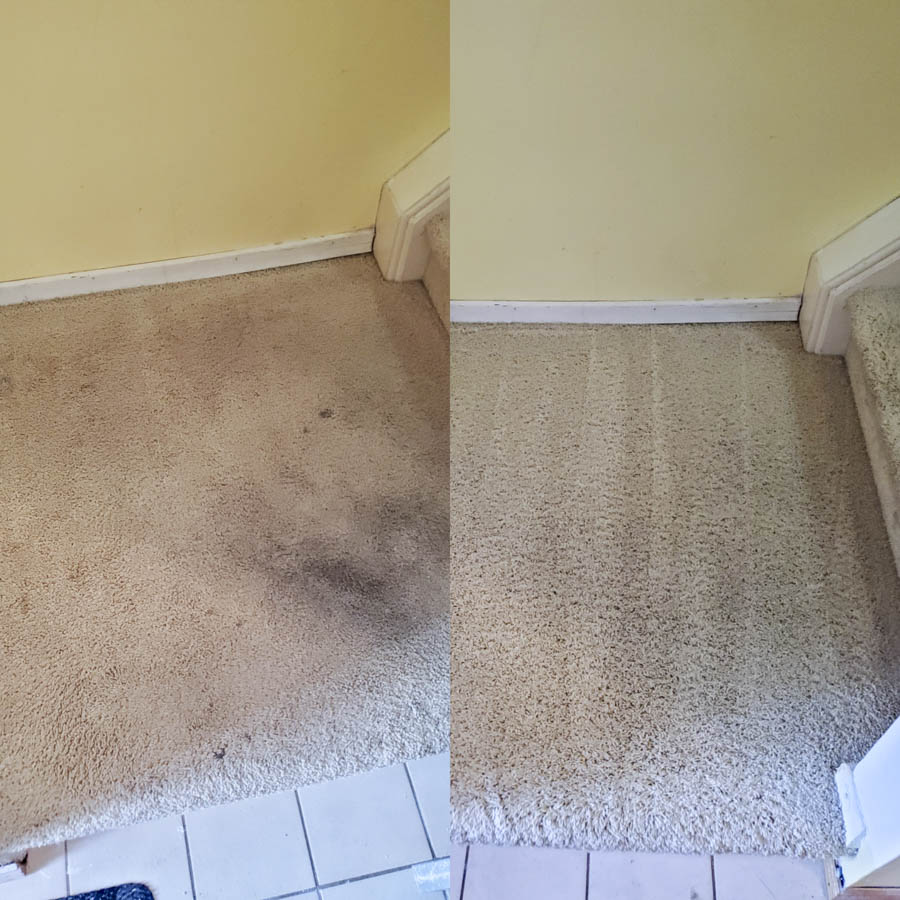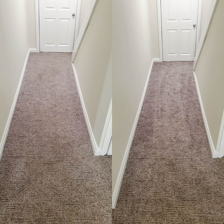 In this picture we are showing you how we cleaned these heavily soiled nylon carpets. We used deep cleaning agitating method that works 99.9% at the same jobs we do every day.