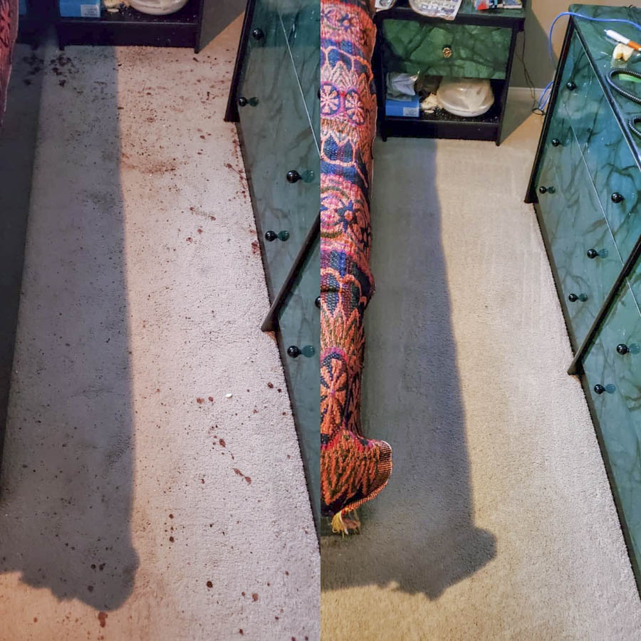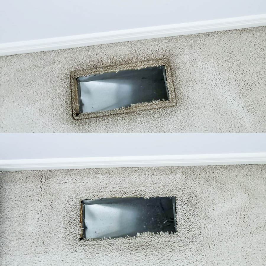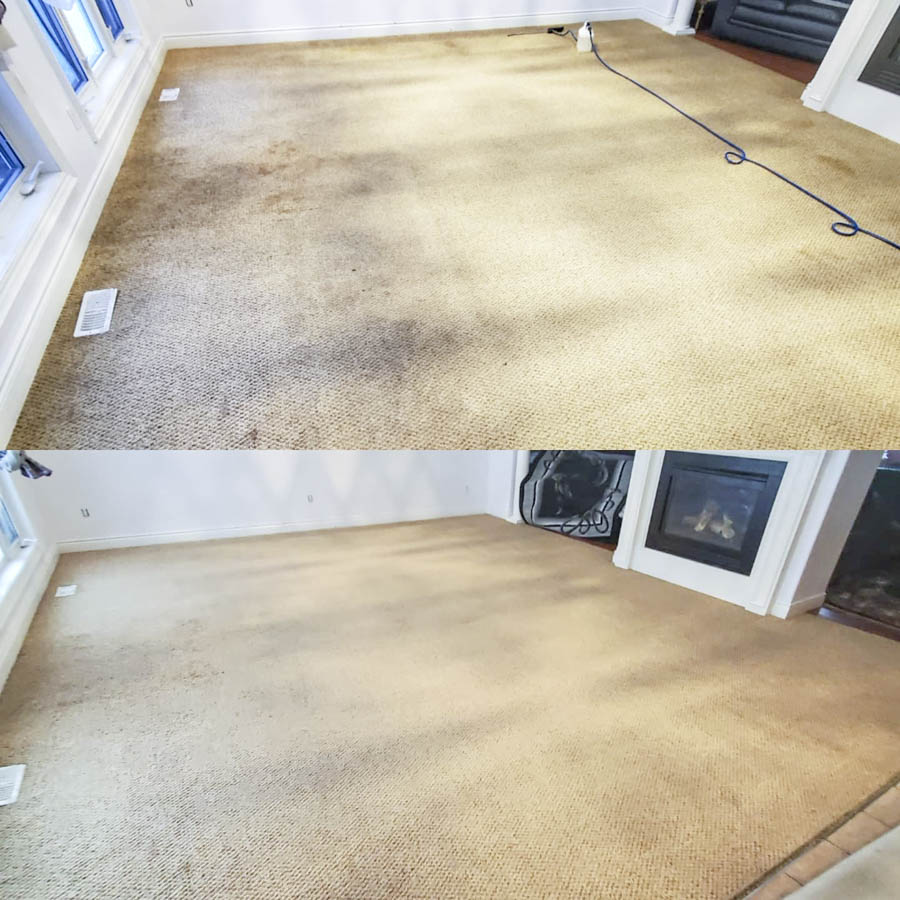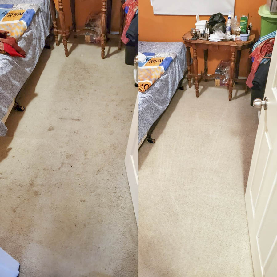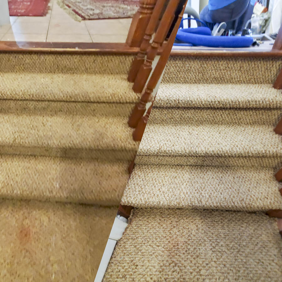 In this picture we are showing you how we cleaned these heavily soiled nylon carpets. We used deep cleaning agitating method that works 99.9% at the same jobs we do every day.